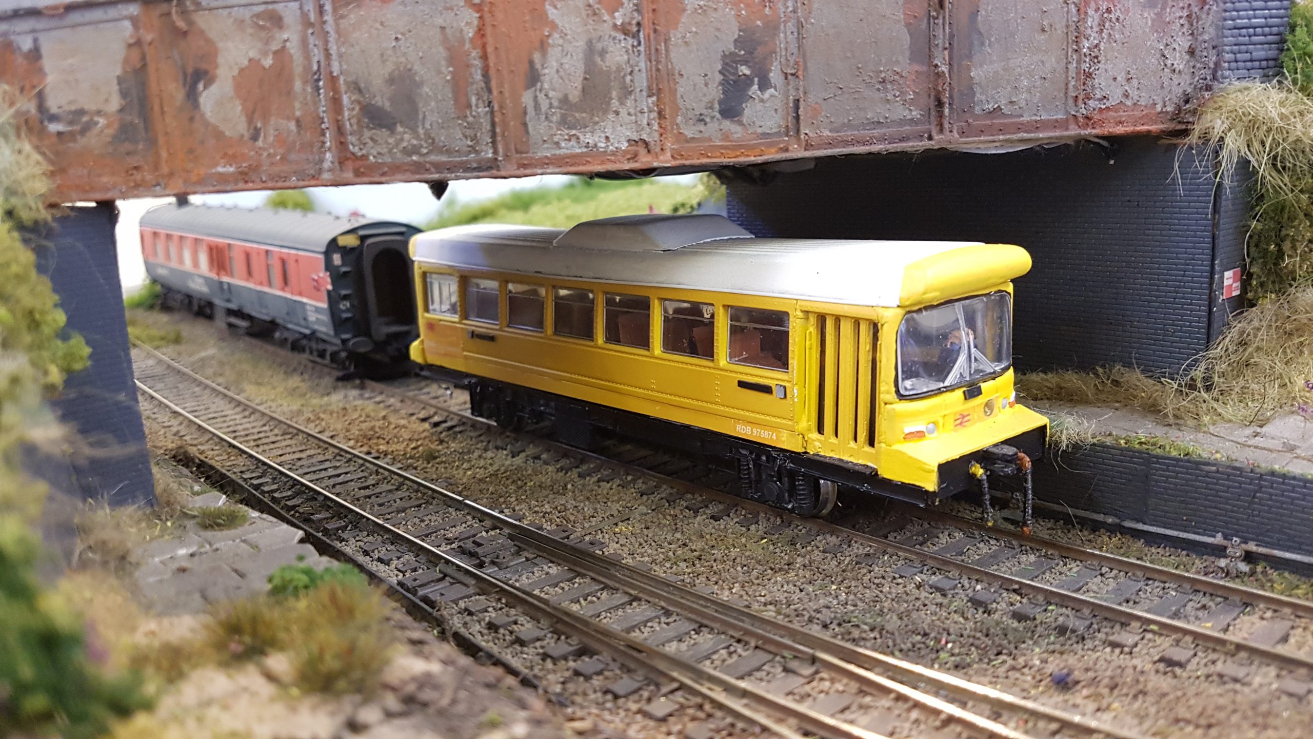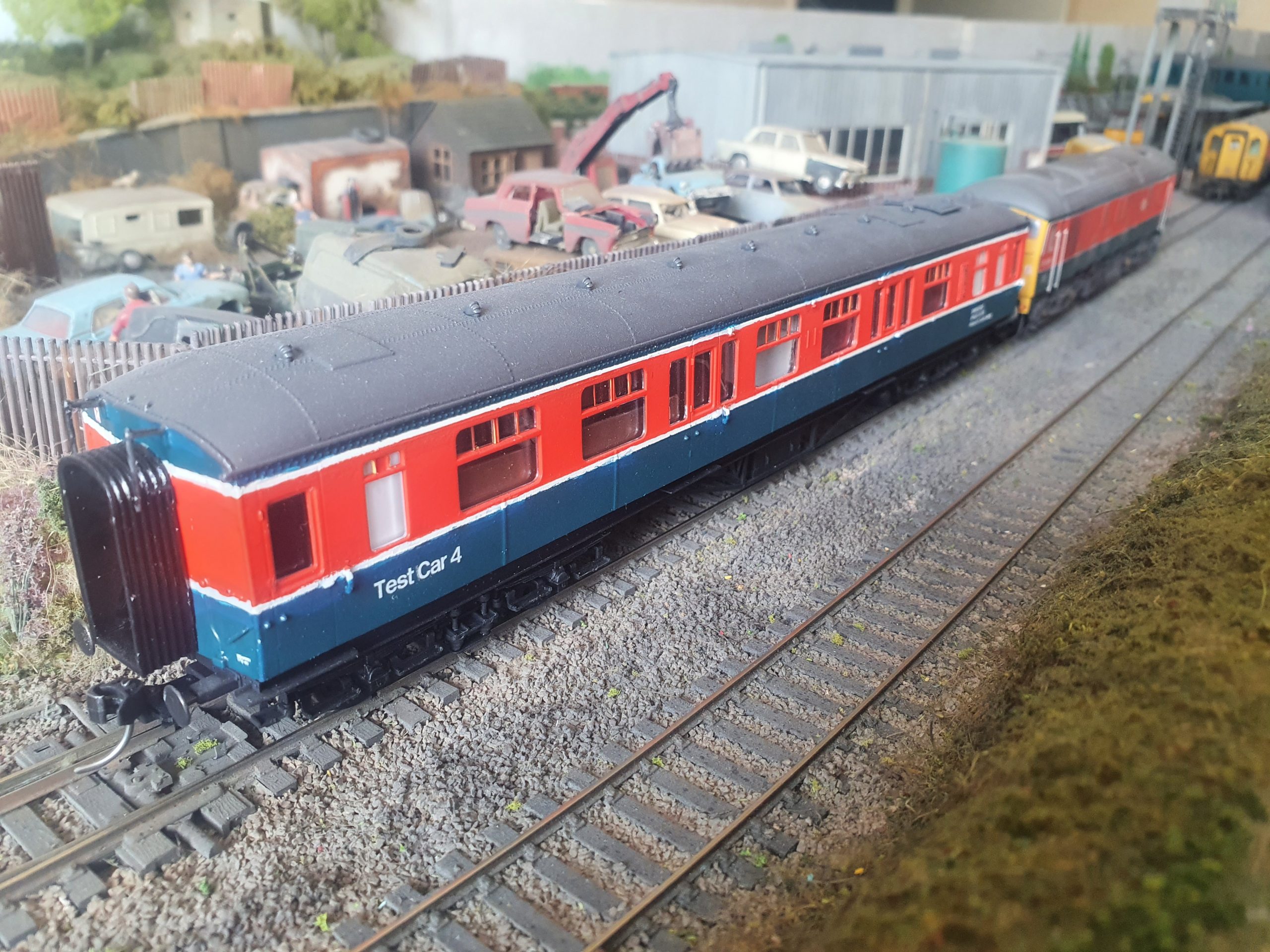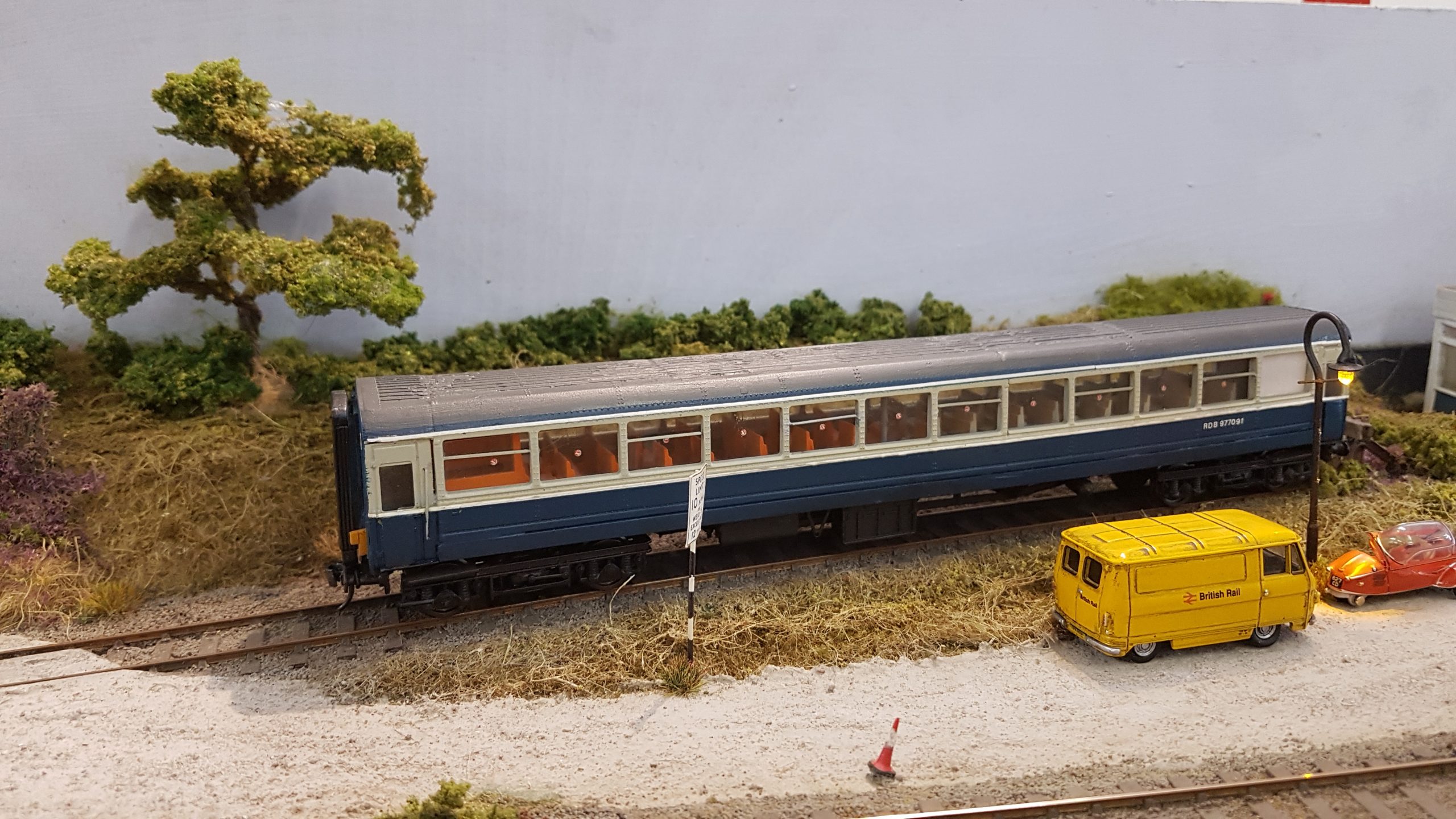 Built using parts from two Hornby Pacer bodies and a Bachmann MK1 coach chassis.