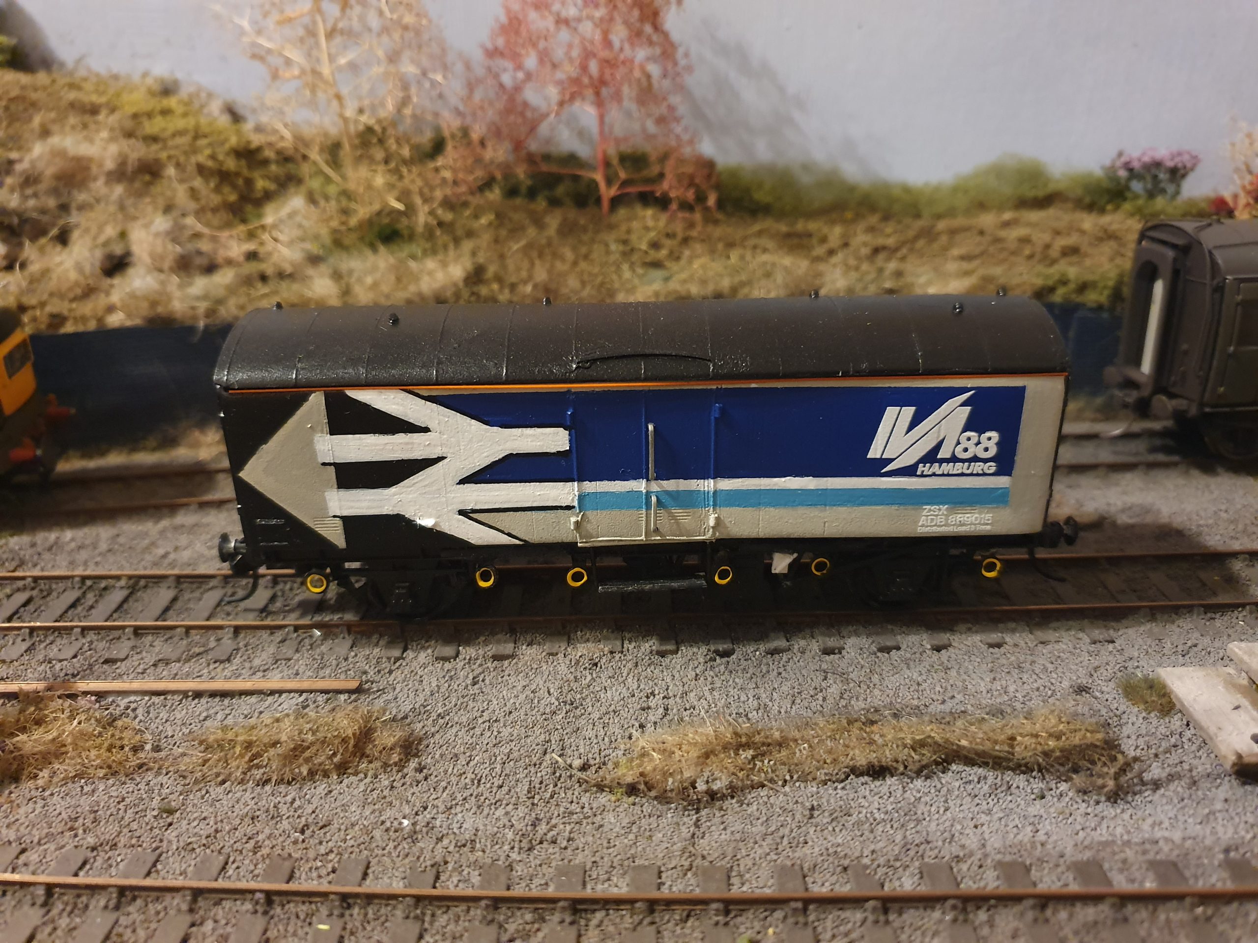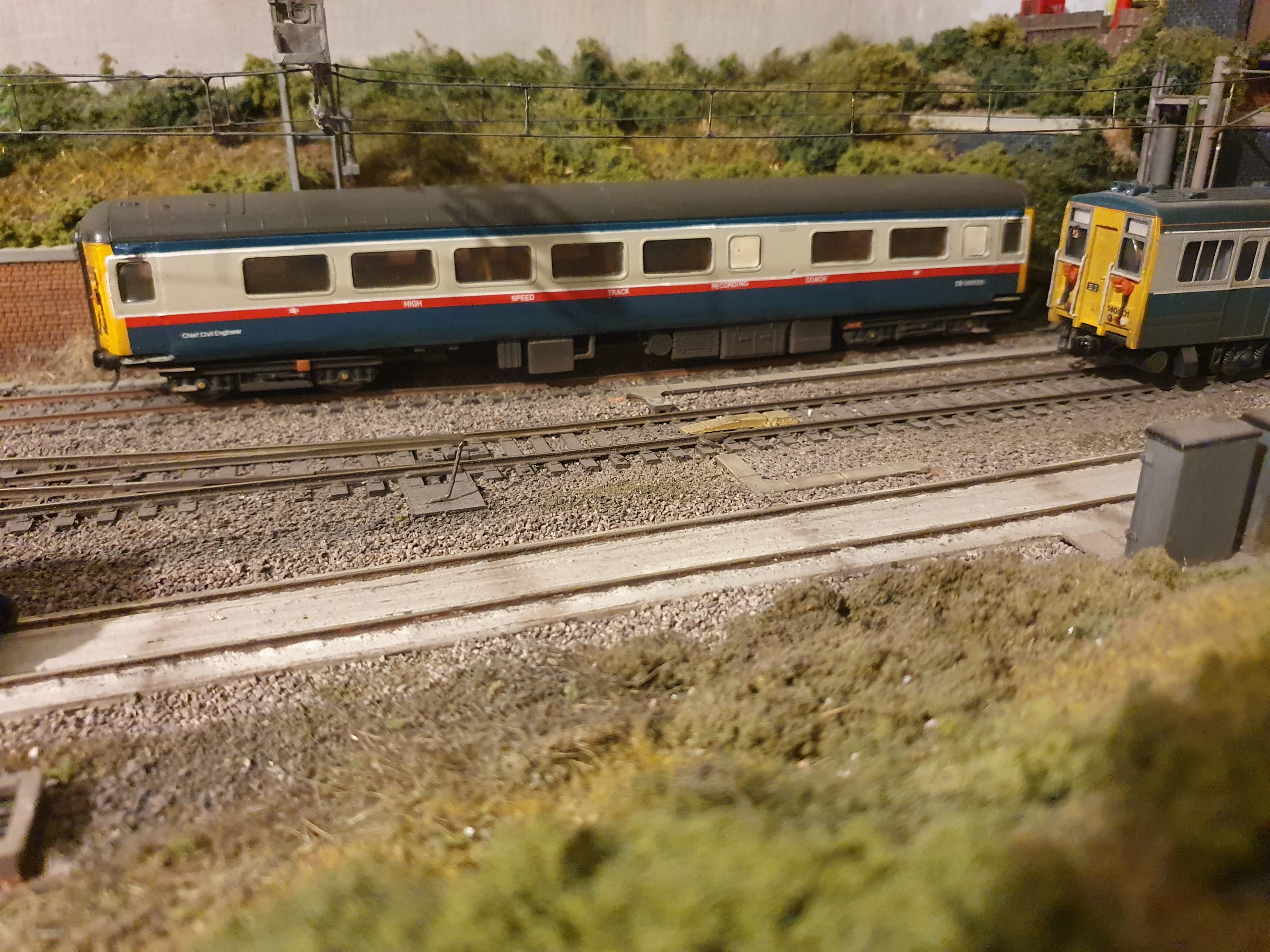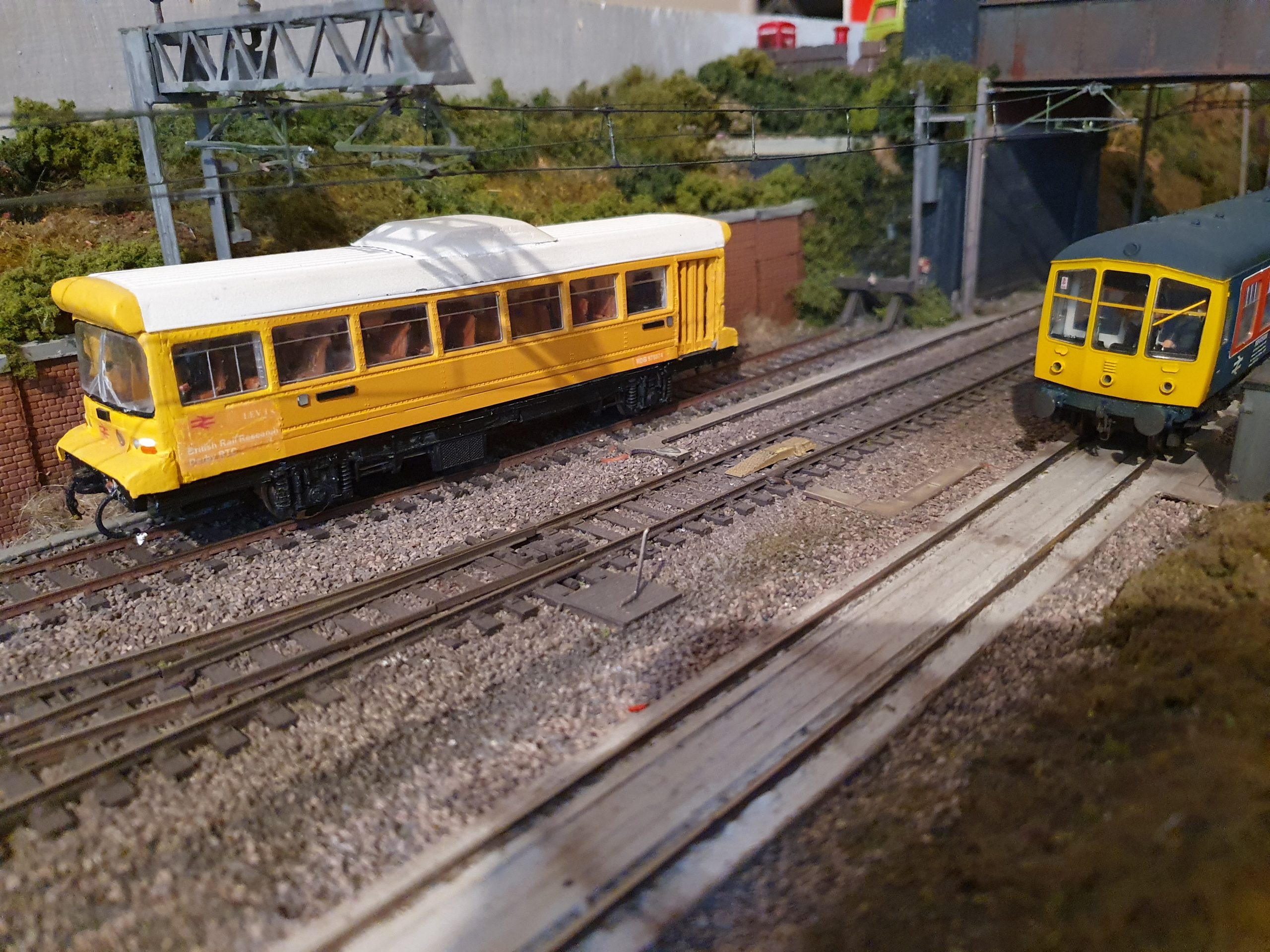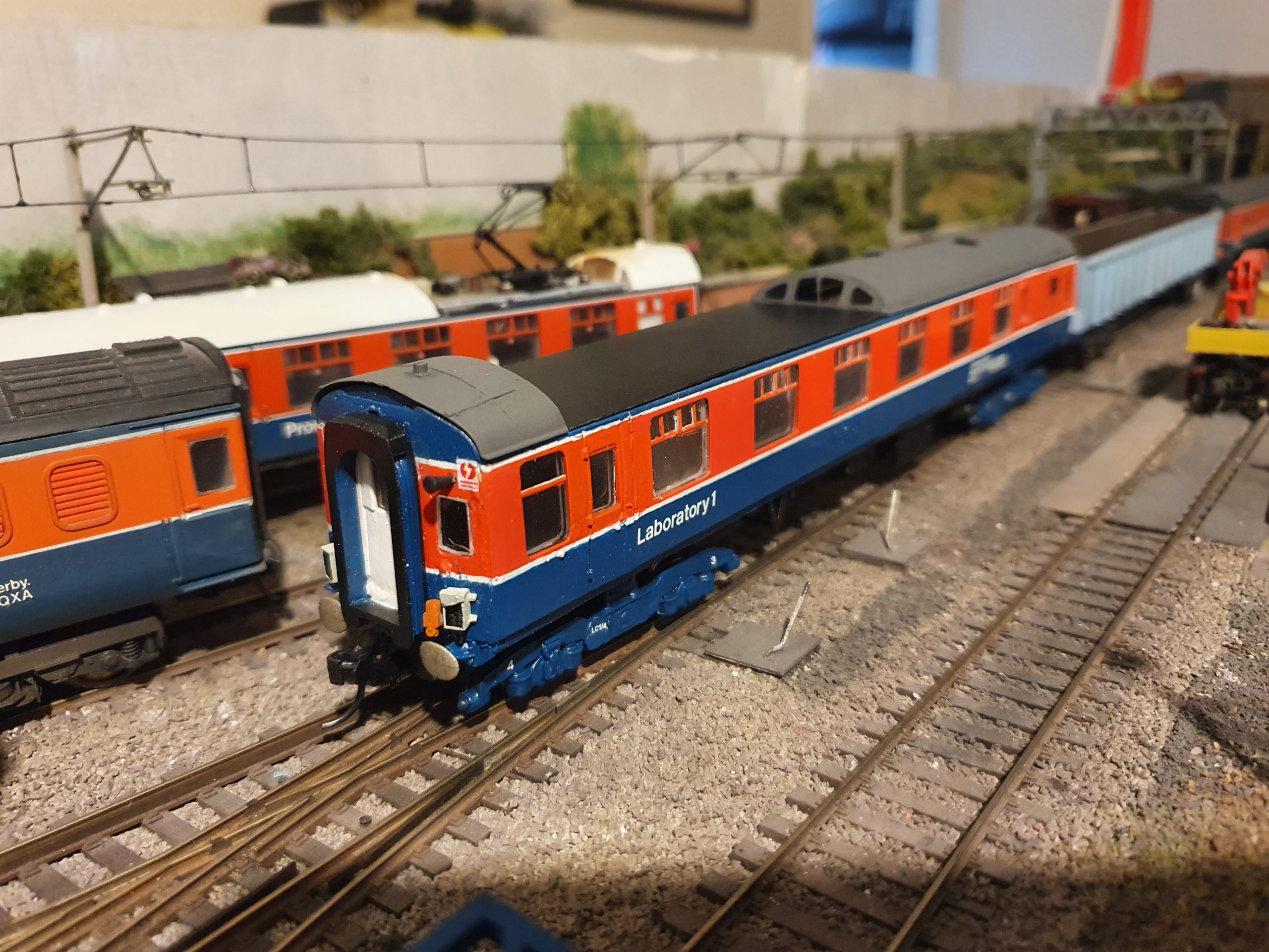 Built using parts from two Hornby Pacer bodies and a Bachmann MK1 coach chassis.
