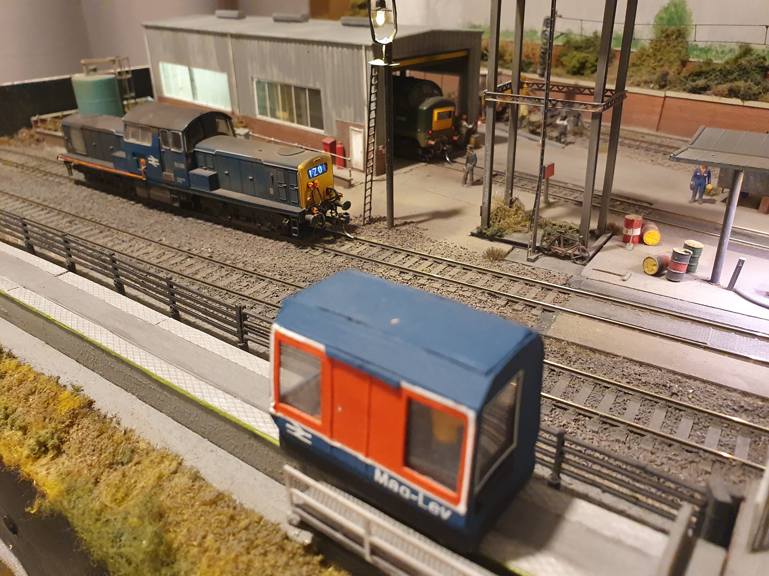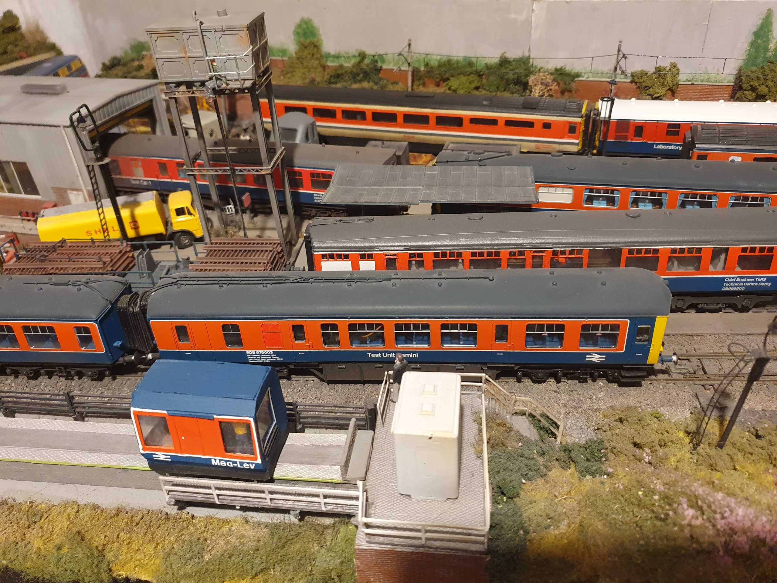 MAGLEV is a scratchbuilt, working model! In the background is Heljan class 17 No. 8598 with added multiple apparatus added.