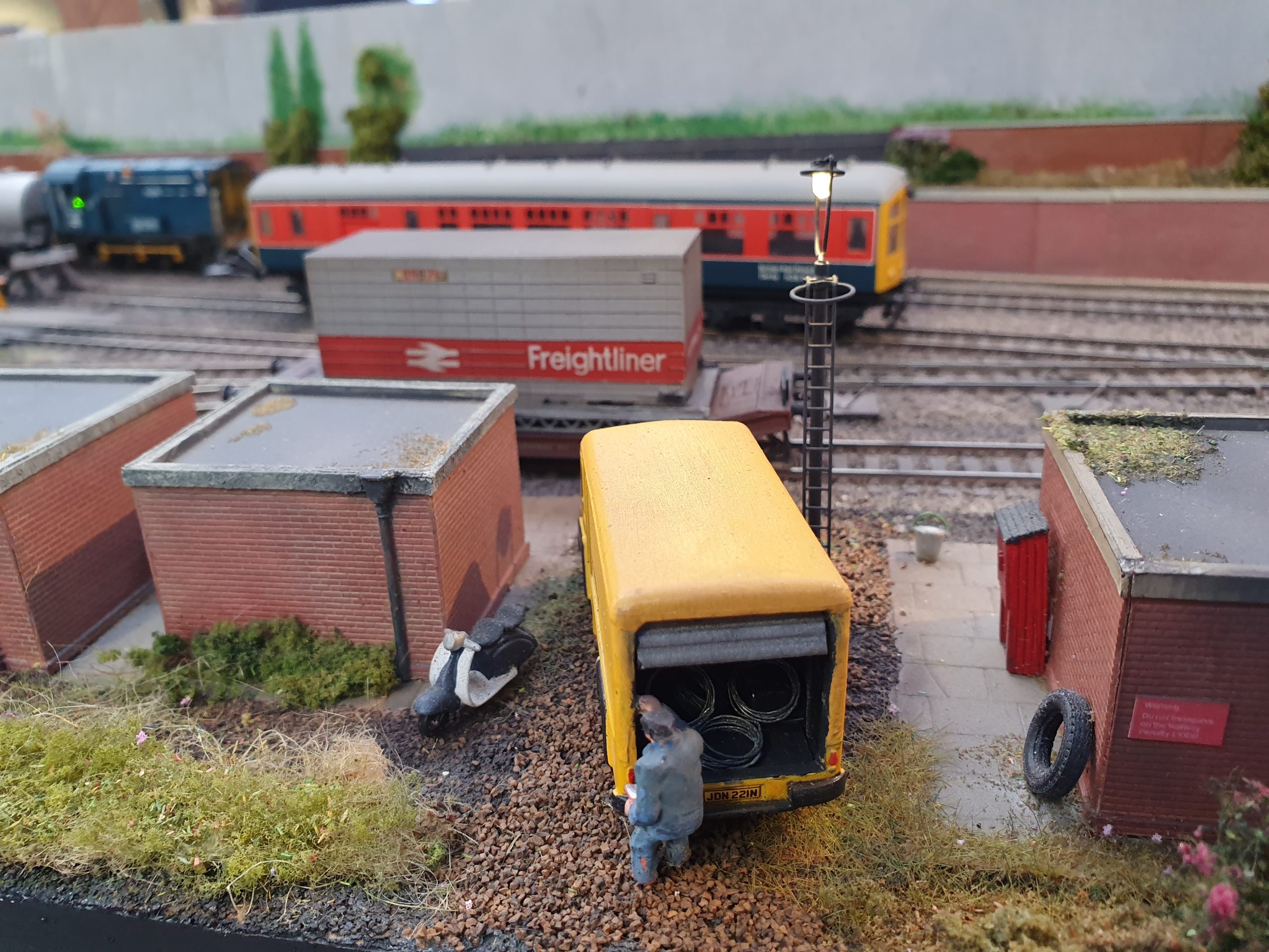 Welby Lane can be seen here on a busy testing day with many of the department’s strange and odd looking vehicles being used on various test trains. Many items are adapted RTR, kit or scratch built. All locomotives are sound fitted and detailed. Kadee couplings are used throughout the fleet.